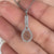 Round diamond pendant with prong set design in white gold.