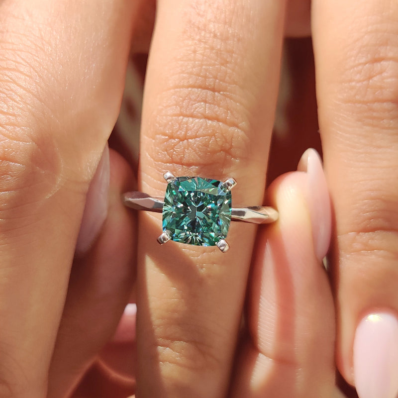 Cushion cut engagement ring, featuring a brilliant moissanite stone for an elegant and classic design.