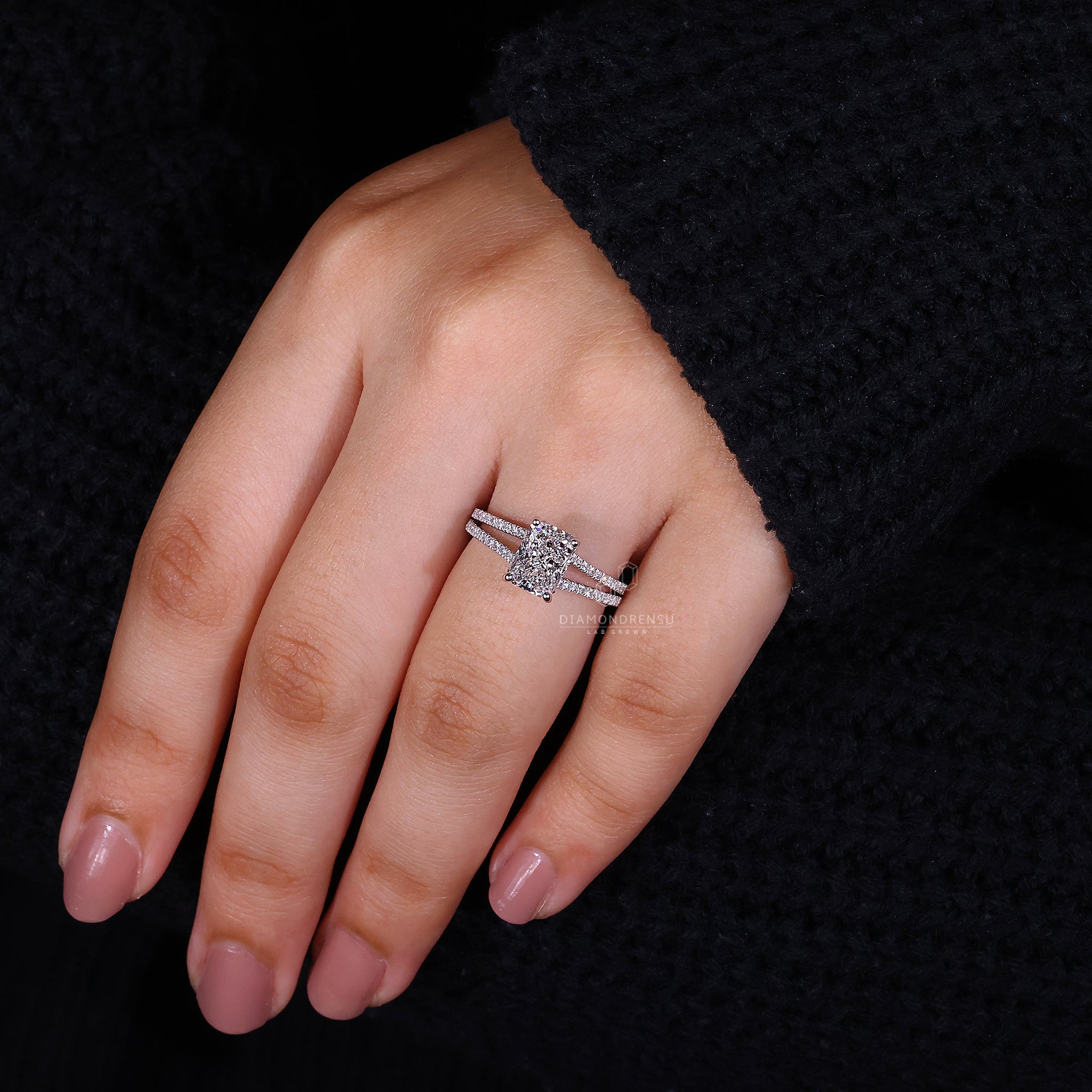 Hidden Halo Radiant Engagement Ring with a stunning radiant cut.