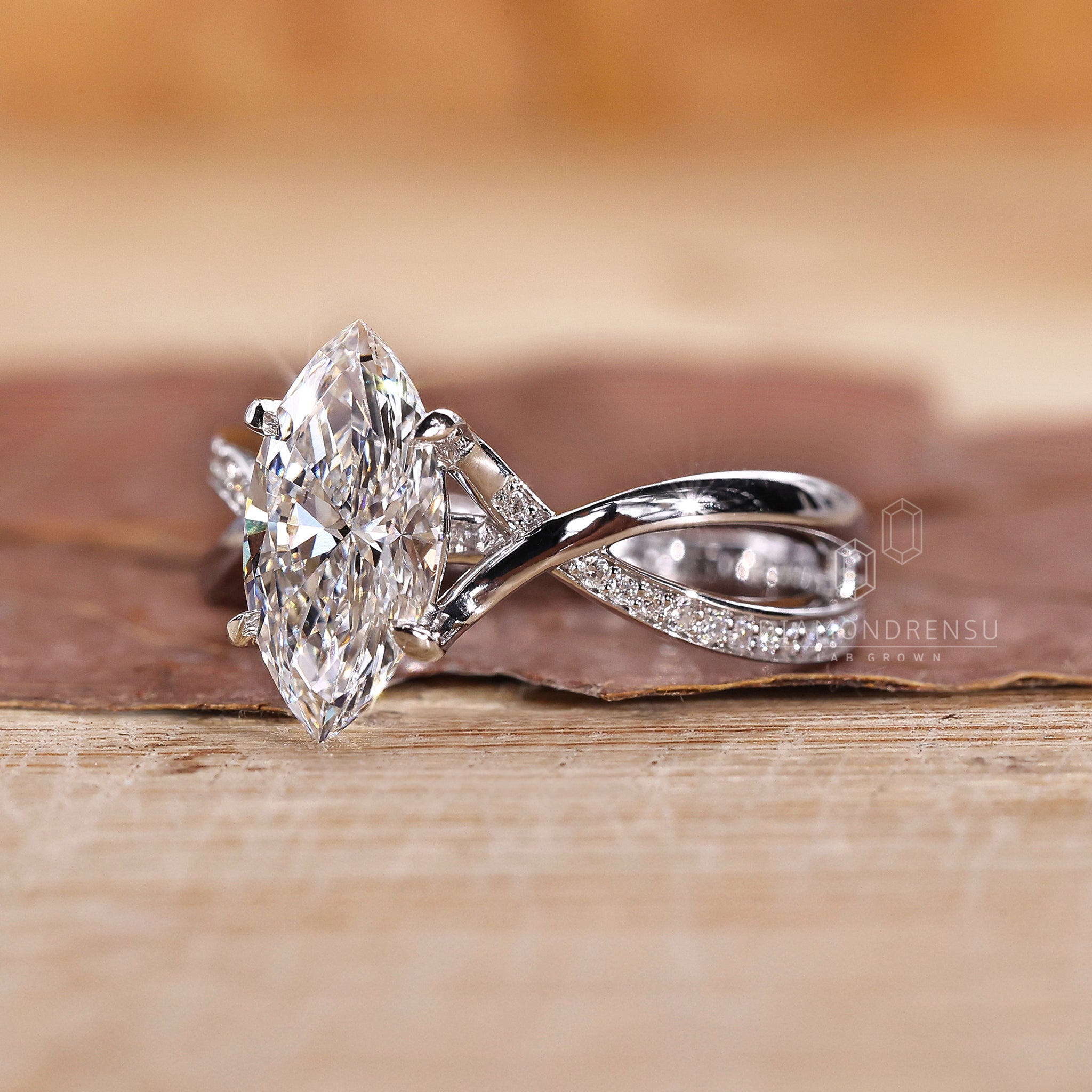 marquise diamond engagement ring, pave diamond ring band, claw prongs