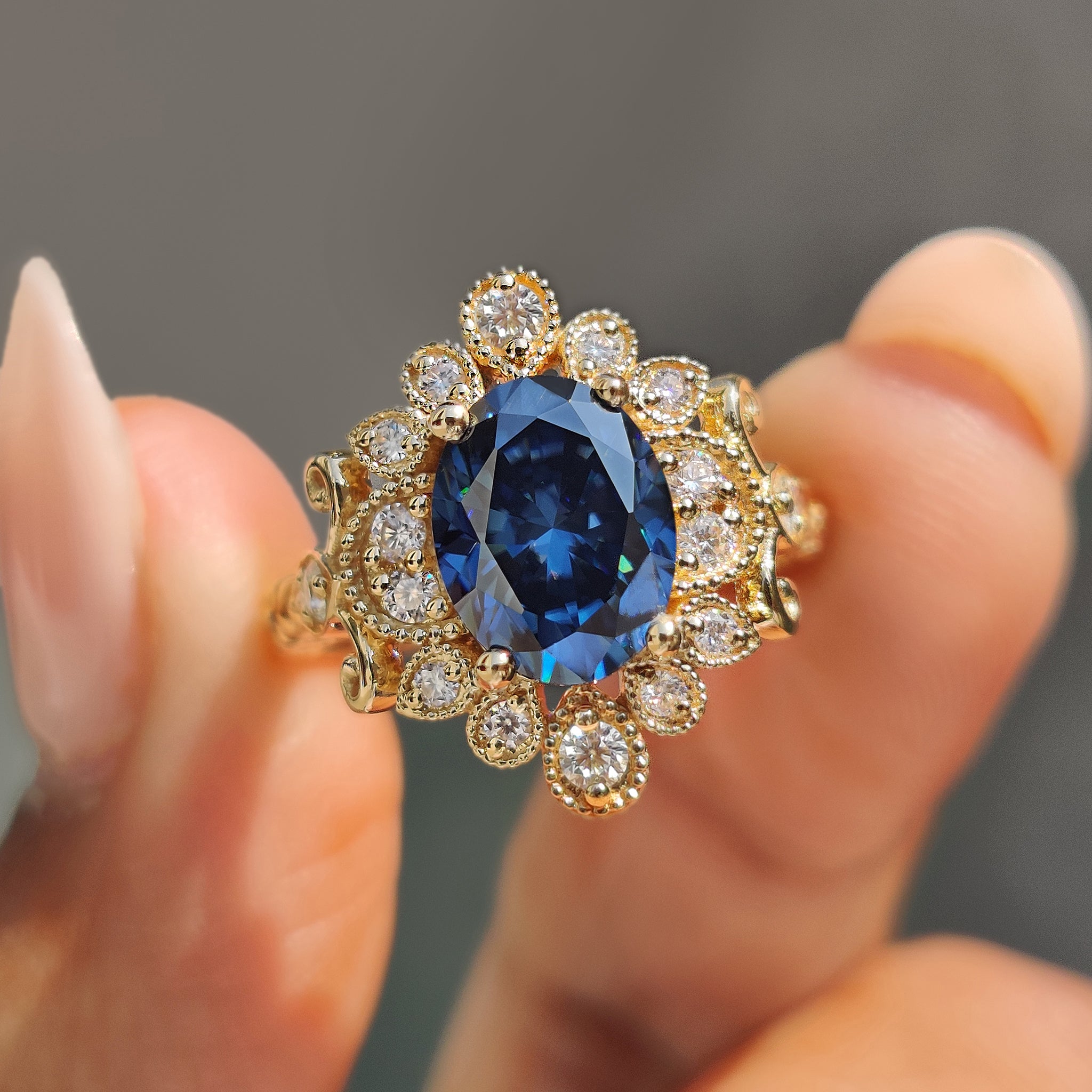 Oval Moissanite Engagement Ring In Vintage Style